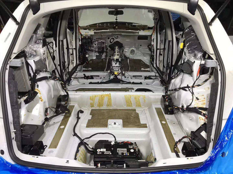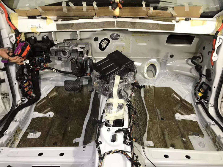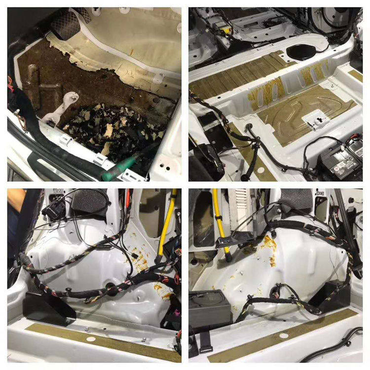 底盘和尾箱都清除干净,挡火墙也需要进行隔音处理。