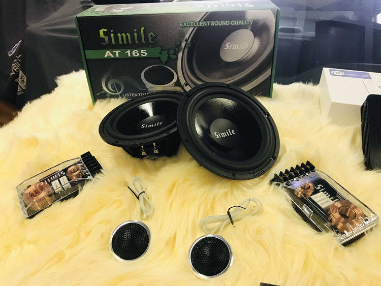 这套音响系统当中,更换了前后声场两套喇叭;前门声场诗蔓AT165二分频喇叭,它包含2个高音、2个中低音以及2个分频器;