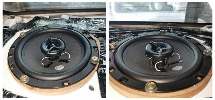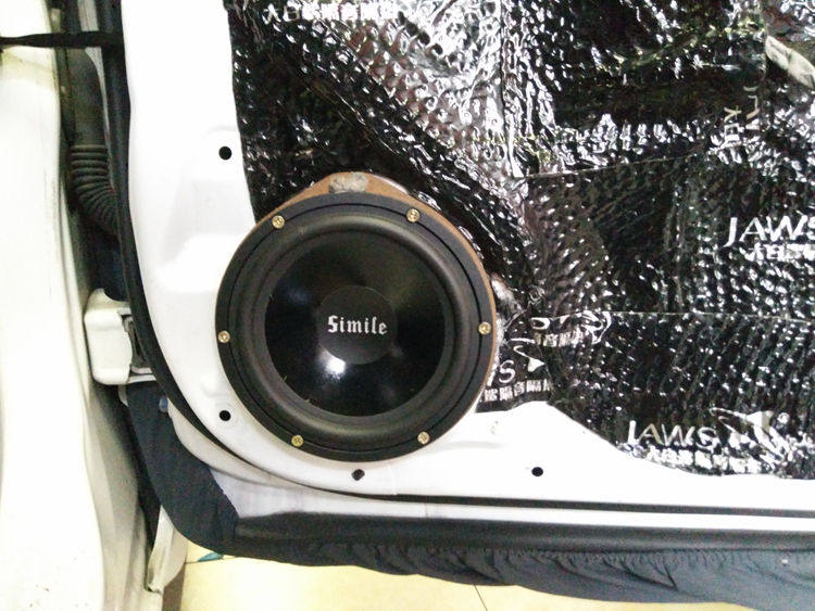 车门双层隔音处理,对位安装诗蔓AT165二分频喇叭的中低音单元。