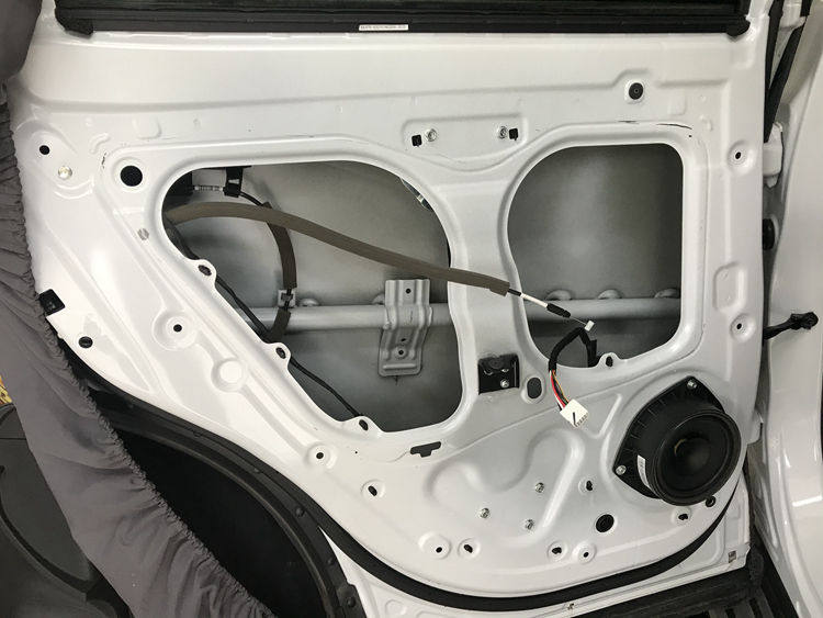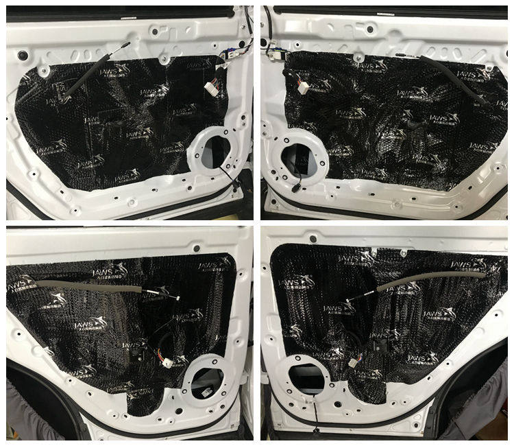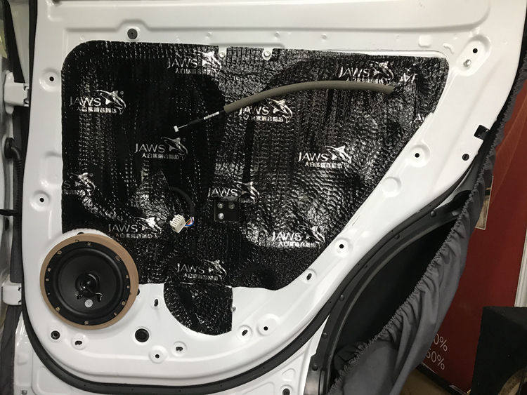 3、车门隔音降噪处理,钣金粘贴2层大白鲨隔音材料,钣金变得更扎实密封从而有效阻隔风噪。