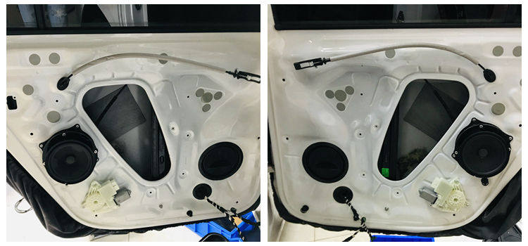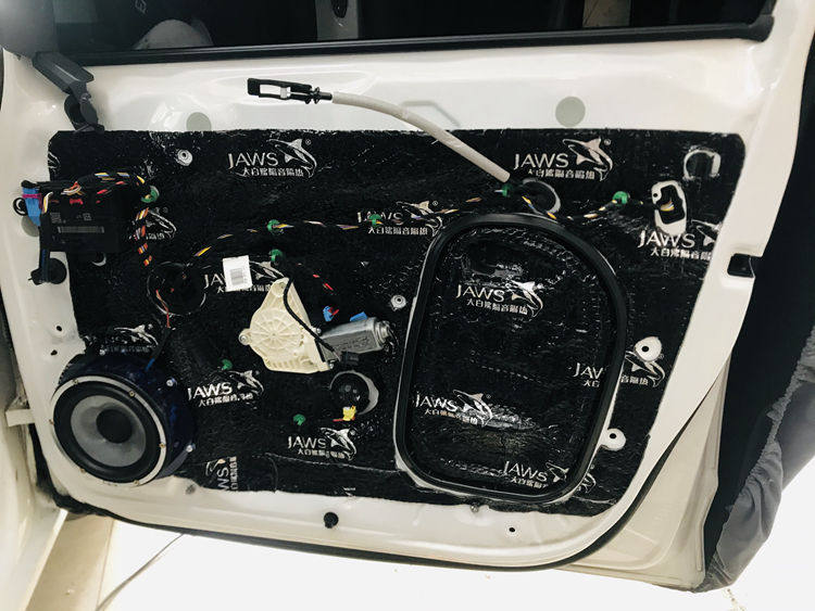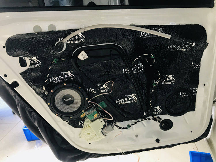 3、车门双层隔音处理,对位安装诗蔓PST 6.2D二分频喇叭,这款喇叭的音质非常厚实饱满,能够较好兼容人声和其他风格的音乐。