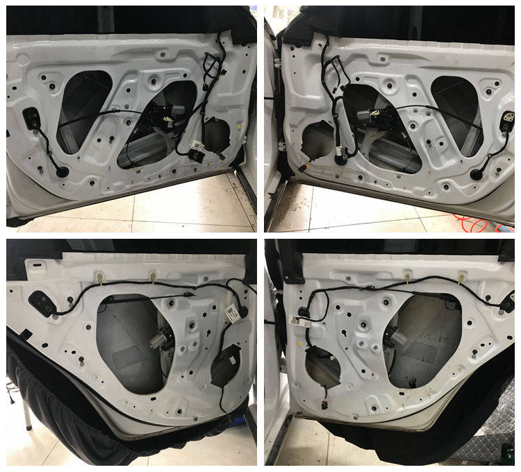 安装喇叭之前,先对车门隔音,这是丰田陆巡车门构造,门上就一层膜