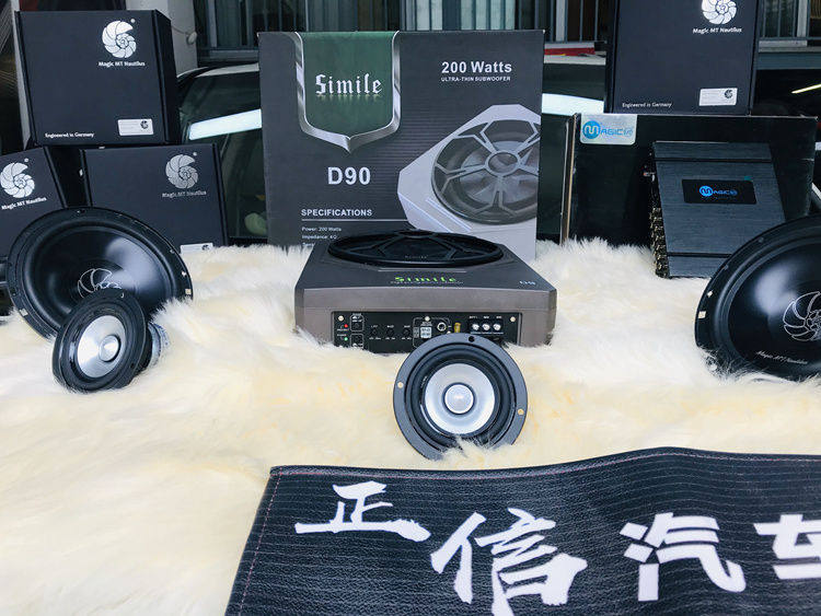 前声场声鹦鹉螺N3.16W3三分频喇叭,原车A柱直接更换,三分频喇叭的高音更清晰、中音更纯正、低频效果更通透饱满富有弹性;后门升级魔立方两分频喇叭,也是对位安装;在魔立方1212十路功放驱动下每个喇叭都能发挥优质的水准,带来富有层次感、立体感的音质效果。在座位底下加装的诗蔓D90有源超薄小钢炮,则有效提升了超低频效果,让人感受更澎湃有力度的音浪效果。