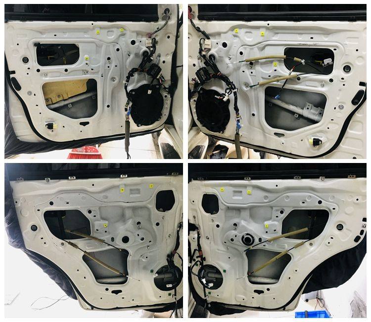 安装喇叭之前的丰田陆巡车门构造,钣金单薄,里边没有隔音处理。