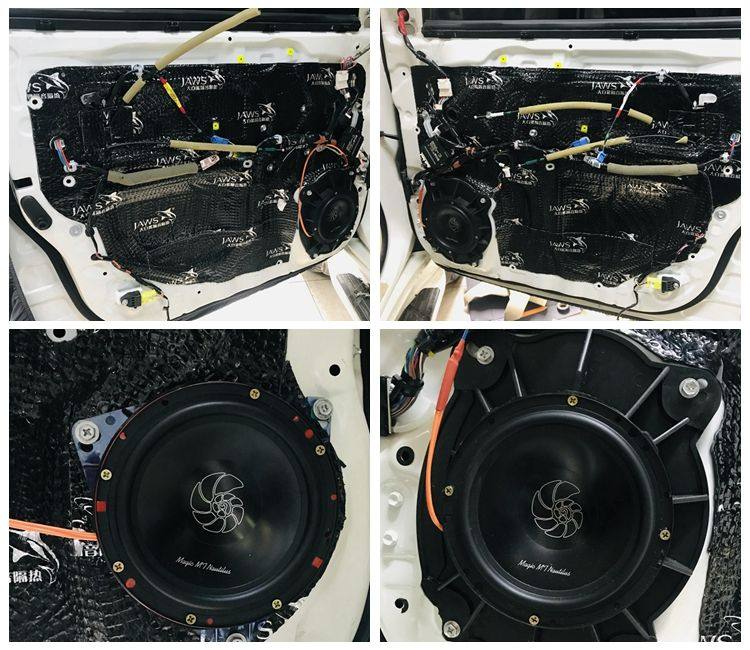 后门隔音降噪升级,车门钣金隔音处理,对位安装魔立方鹦鹉螺N3.16两分频套装喇叭的中低音单元,厚实而又富有质感的音质,感觉非常温暖。