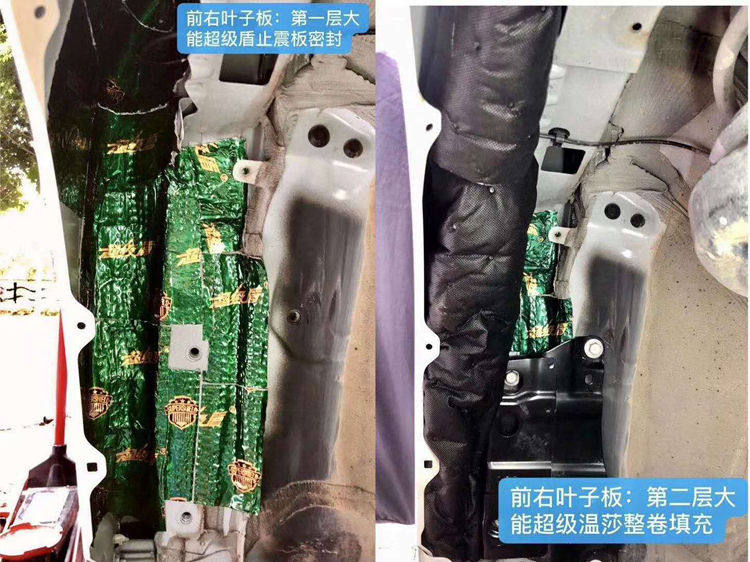 首先是车门隔音降噪升级,车门钣金双层隔音处理,大能超级盾止振材料,提升钣金扎实度、阻隔风噪。