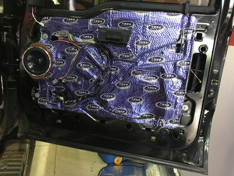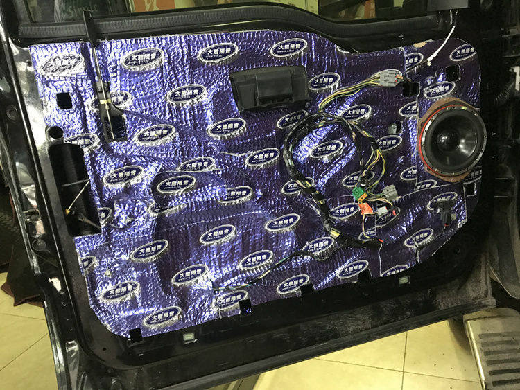 车门隔音降噪,安装喇叭,前声场的高音也是对位安装。