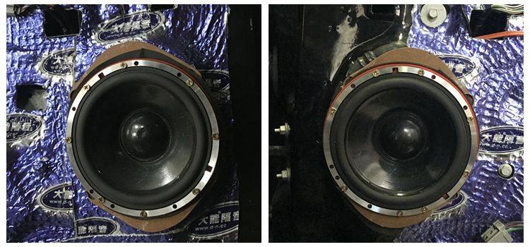 诗蔓SQ6.1中低音单元安装效果图,重庆正信的音响改装团队,特制喇叭安装支架固定,细节做得非常到位。