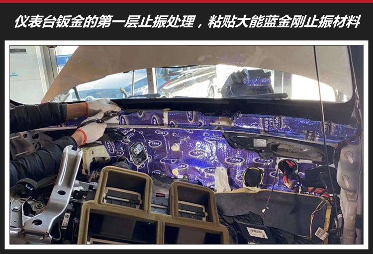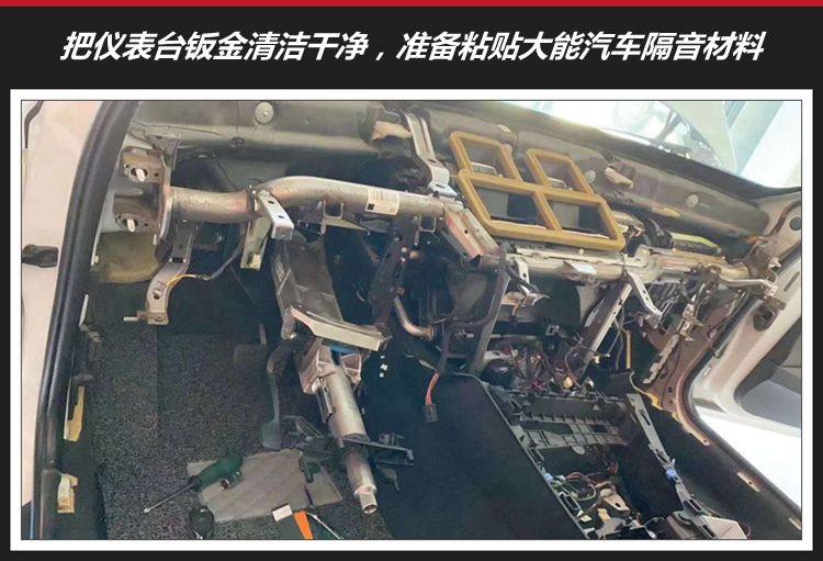 把原车仪表台钣金清洁干净,准备粘贴大能汽车隔音材料。
