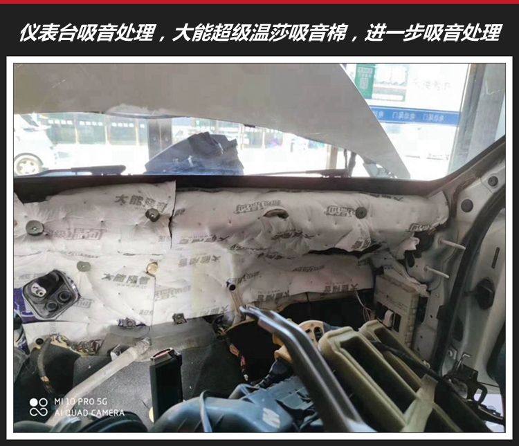 拆卸仪表台附件,重庆正信的改装团队拥有丰富的施工经验,在附件拆卸、隔音材料和附件复原方面做得非常细致。