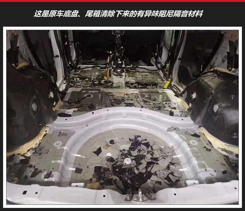 2、清除原车坐舱、尾箱底板有异味的阻尼隔音材料,车内异味问题得到有效解决。