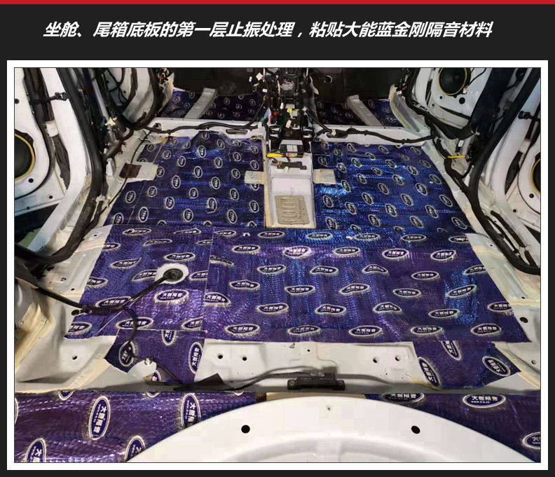 3、坐舱底板隔音解决方案: 2层大能蓝金刚隔音材料 1层大能超级温莎吸音棉