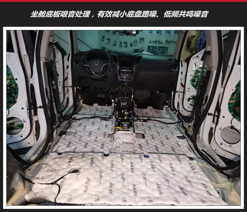 坐舱底板止振和吸音处理,有效阻隔底盘路噪和钣金共鸣噪音,使得爱车更安静舒适。