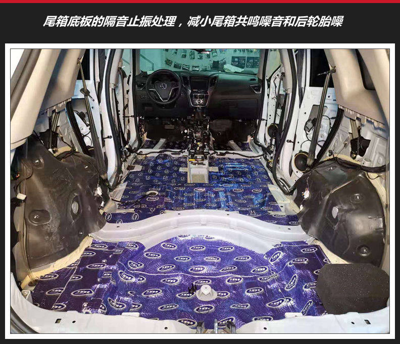 4、尾箱隔音处理,同样是双层隔音,先止振再进行吸音处理。
