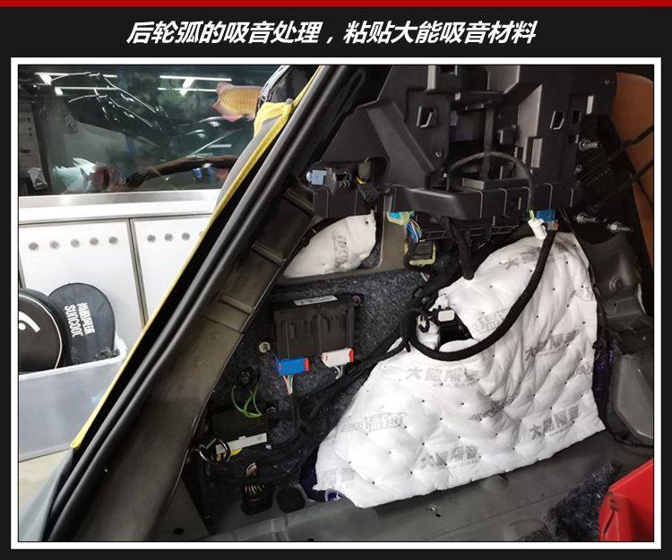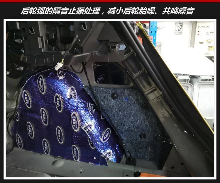2、尾箱后轮弧的隔音处理,解决尾箱共鸣噪音、后轮胎噪以及风噪问题。