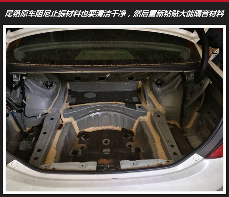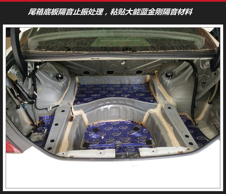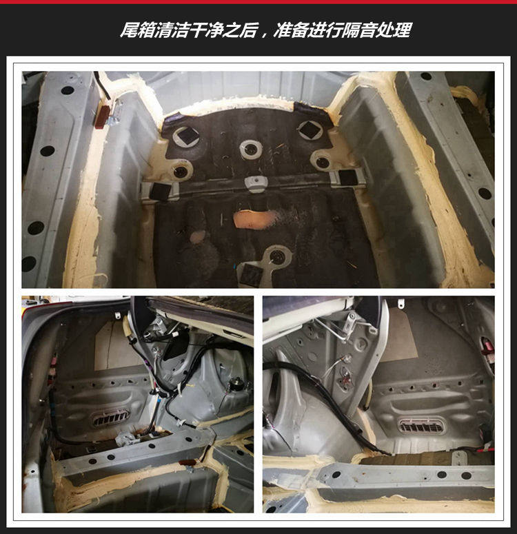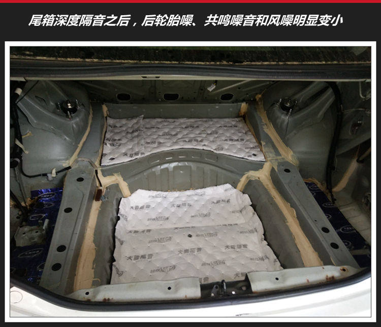 尾箱止振处理之后,再粘贴一层大能吸音棉,双层隔音效果更出色。