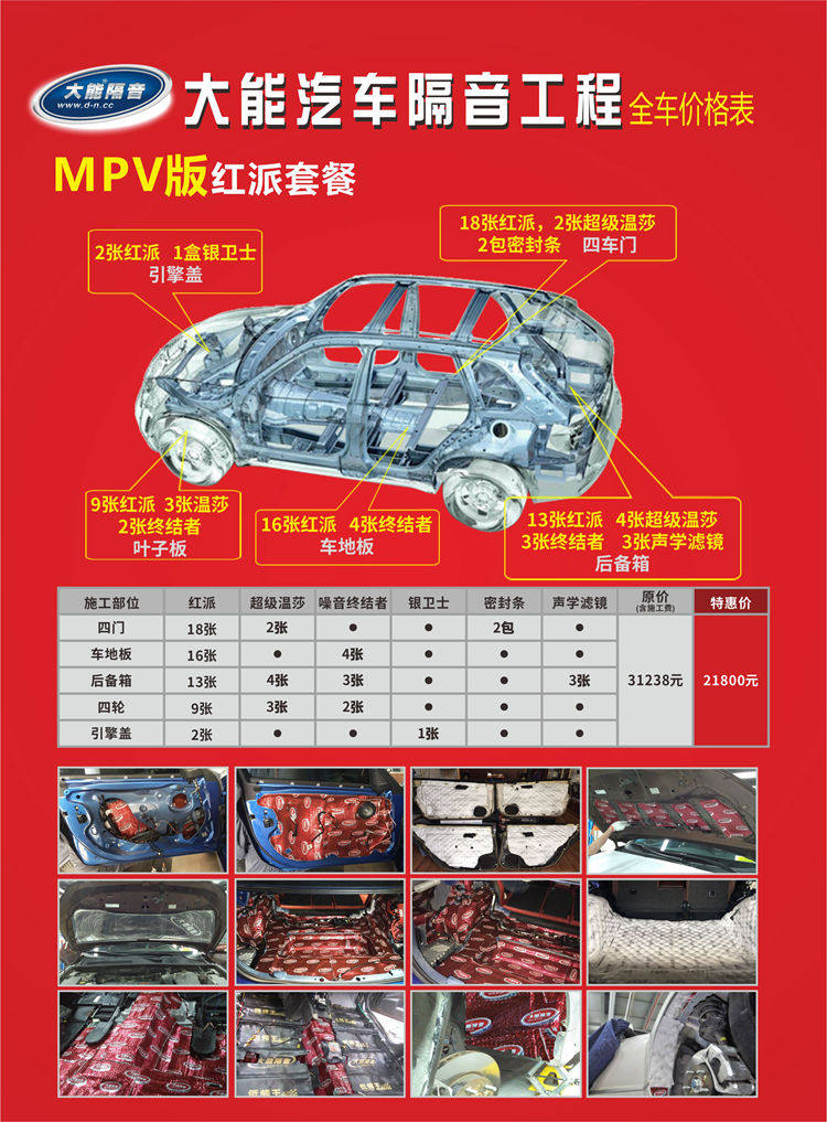 大能汽车隔音降噪材料的隔音、吸音效果非常出色,而且效果持久高效;同样的隔音方案也适用于其他车型,如果你也想为爱车进行隔音,欢迎在评论区留言大家一起交流。