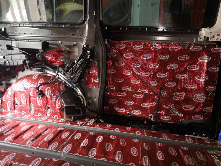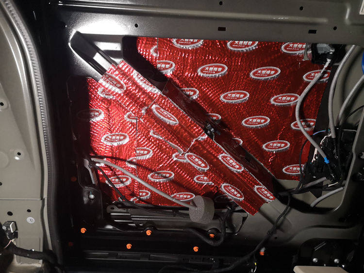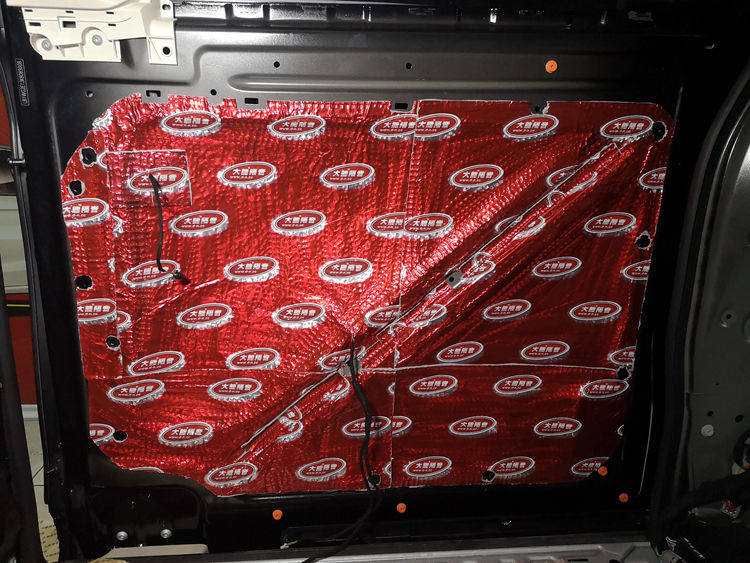 后门里层隔音处理,粘贴大能红派止振材料: