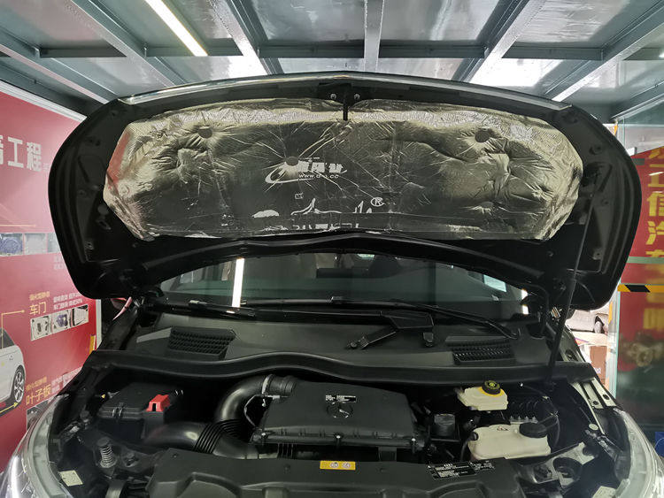 3、引擎盖隔音降噪处理,粘贴大能红派止振板+大能引擎盖覆膜,双层隔音之后发动机噪音明显变小。