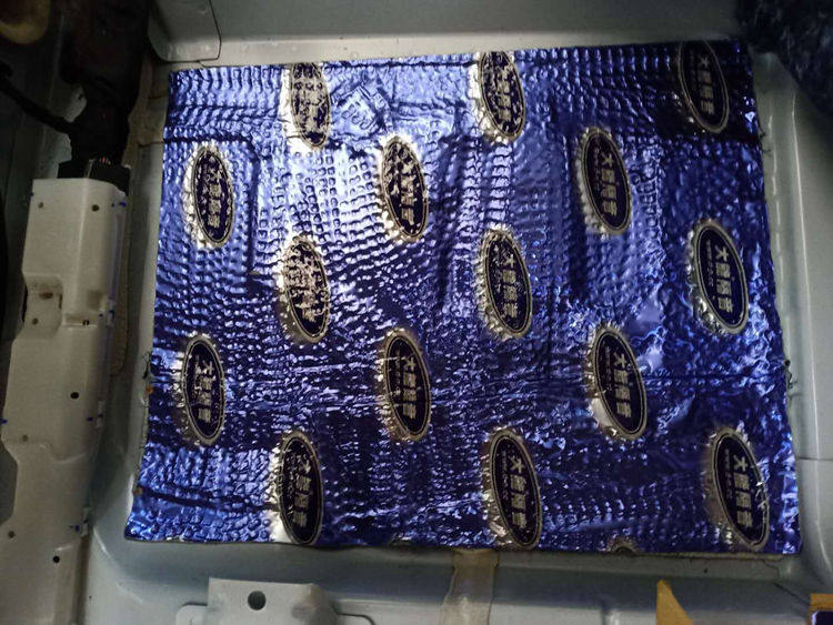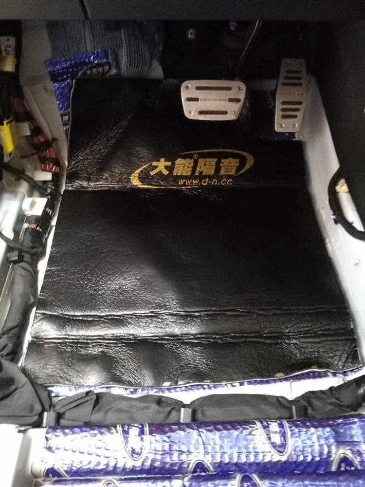 2、底盘隔音降噪处理,先粘贴大能蓝金刚环保止振材料,之后再粘贴一层大能低频王,双层隔音效果更出色。