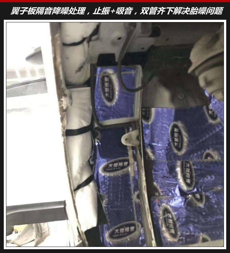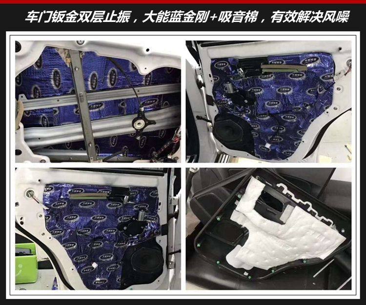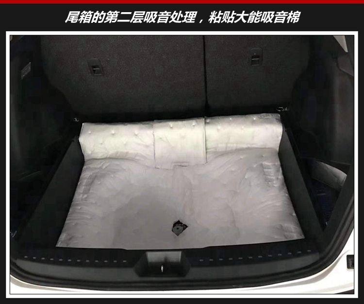 3、尾箱隔音处理,主要解决尾箱共鸣噪音、后轮胎噪、以及风噪。大能隔音止振材料,强化钣金、阻隔路噪。