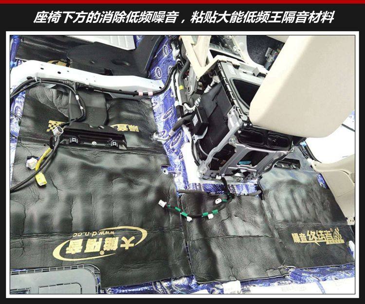 底盘隔音止振处理,粘贴大能低频王隔音材料,它是低频共鸣噪音的克星。