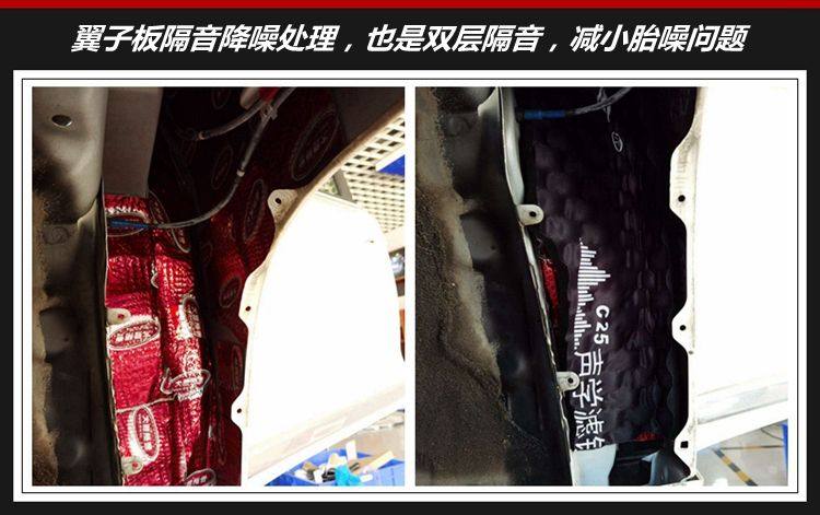 4、翼子板隔音降噪升级,大能红派隔音材料+大能声学滤镜组合,经过隔音之后来自四轮的胎噪得到有效控制。