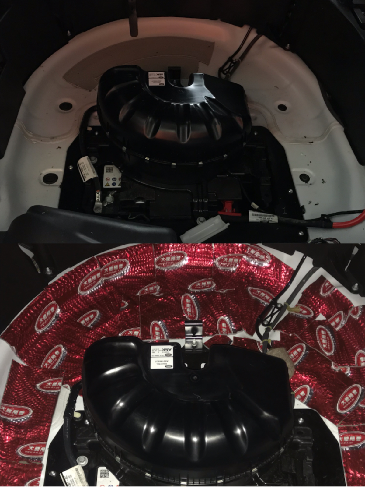 大能红派配合引擎盖专用耐高温覆膜(大能银卫士),双层保护,隔音又隔热。