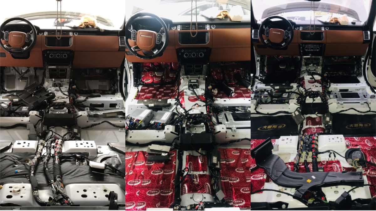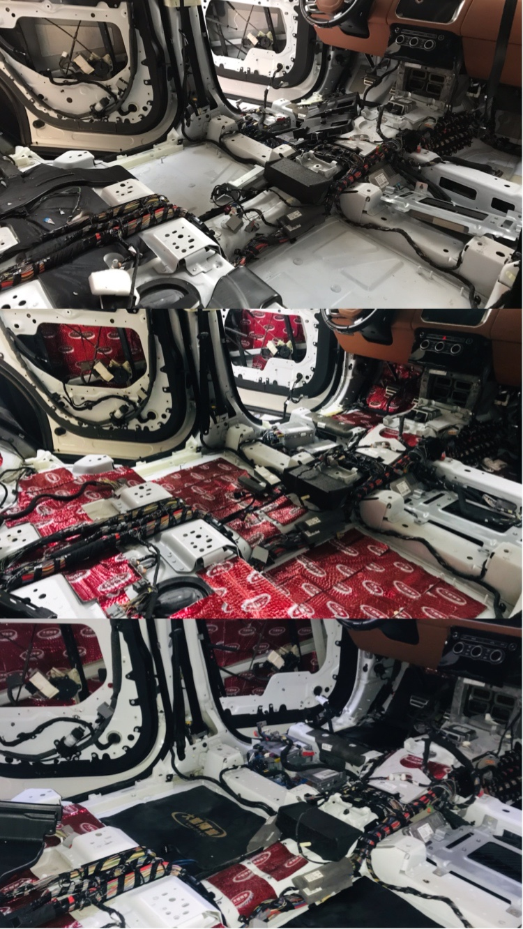 路虎揽胜大能隔音SUV系列专车定制方案降噪施工部位及方案分享到此结束,通过施工后前后试车及车主用车反馈,胎噪,风噪及发动机噪音都得到有效控制。更多车型音响隔音改装请持续关注我们。