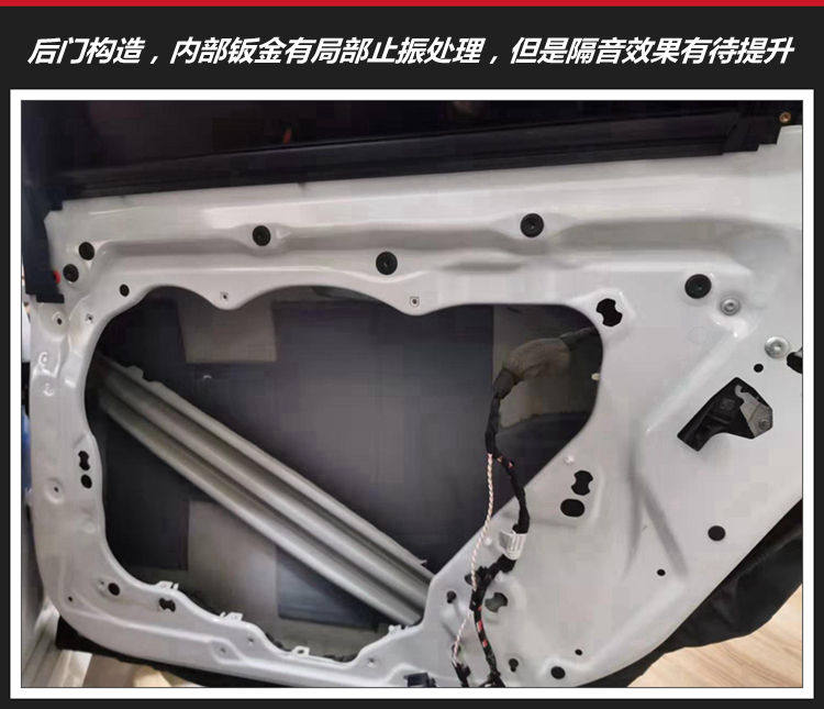 宝马730Li后门构造,钣金隔音设施少,共振共鸣噪音、风噪等问题有待解决。