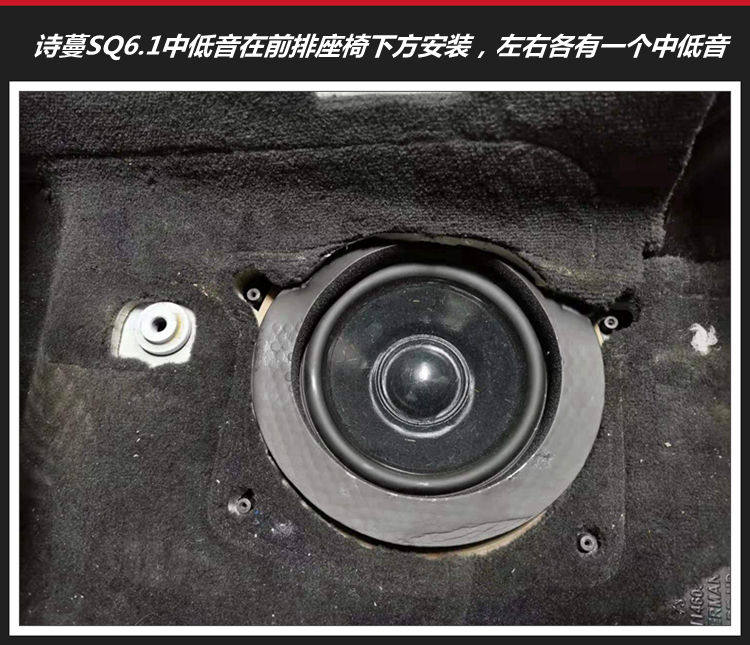 诗蔓SQ6.1中低音在前排座椅下方安装,它的中低频通透饱满富有质感