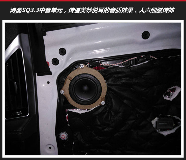 6、后门安装诗蔓SQ3.3中音单元,与前声场相呼应,美妙音乐效果溢满整个车厢。