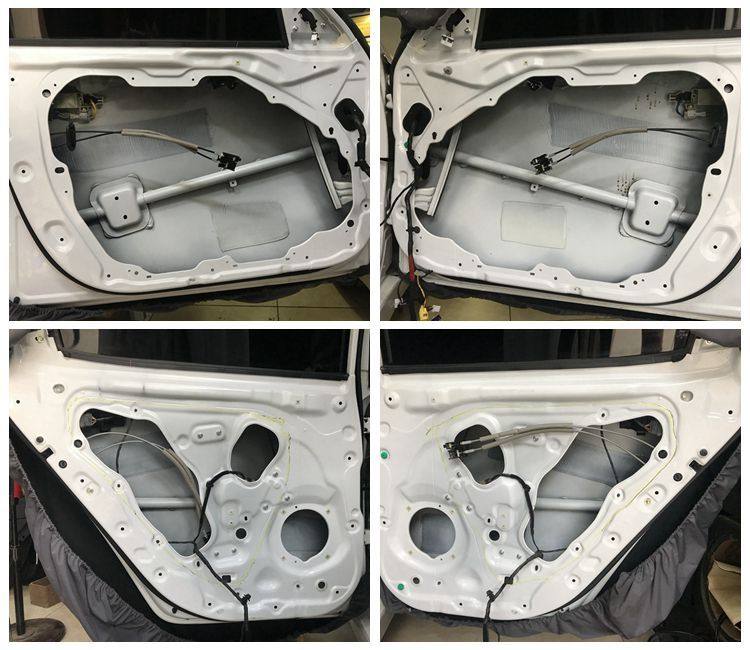 2、安装喇叭之前,先对起亚K5的车门进行隔音处理,这是车门构造,钣金直接暴露出来。