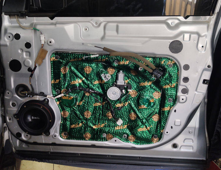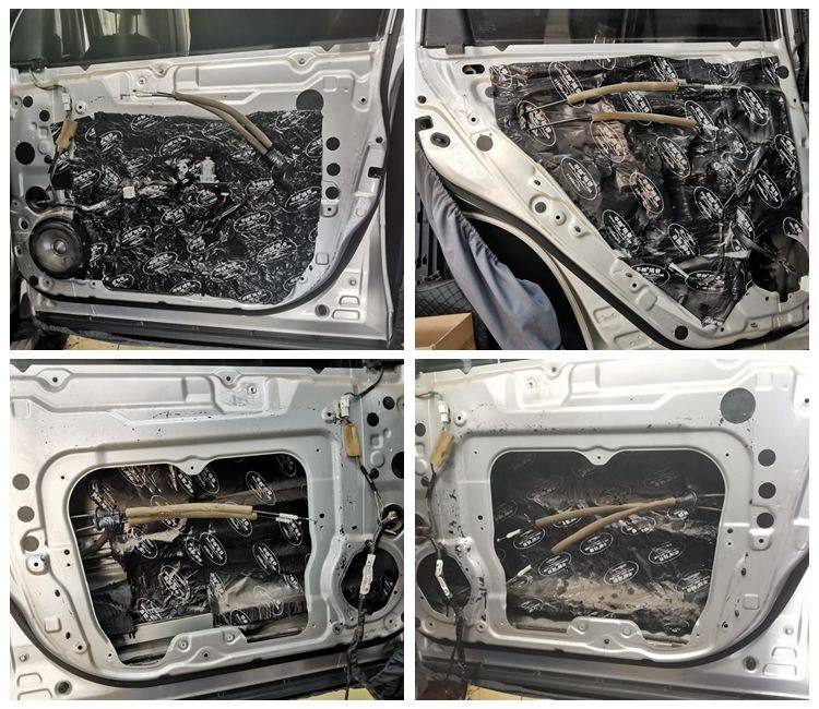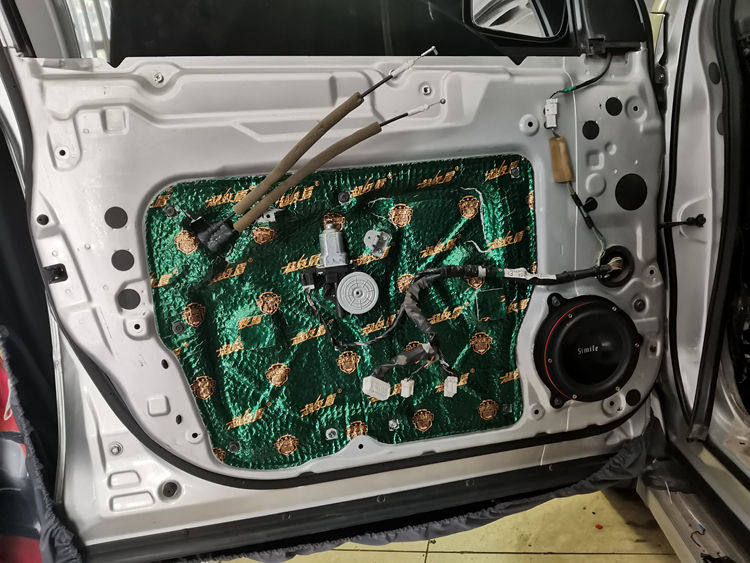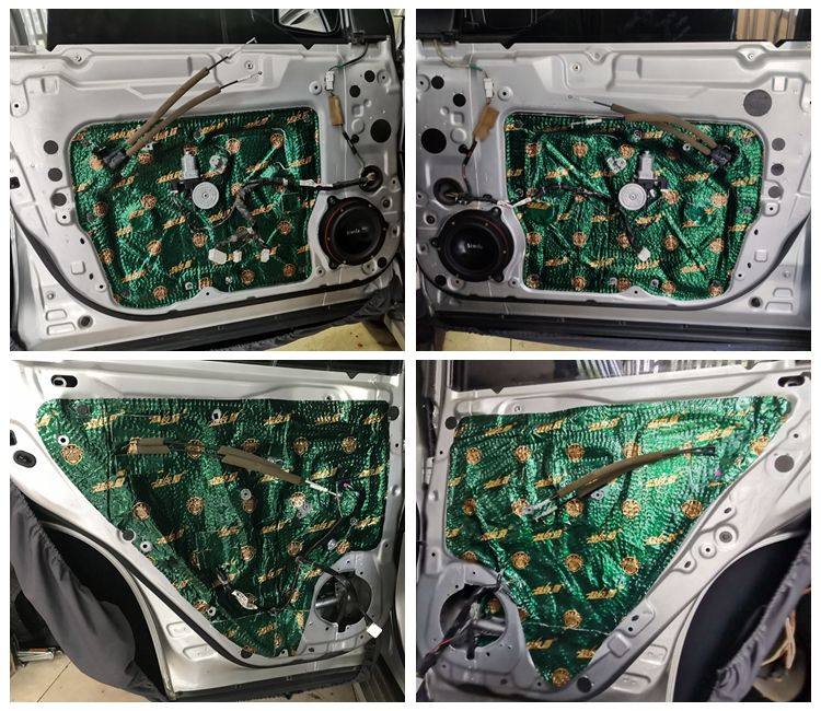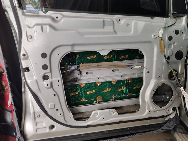 车门重新进行隔音处理,粘贴大能超级盾隔音止振材料,它与钣金贴合度好、防水阻燃、能够保持长时间良好的止振效果。