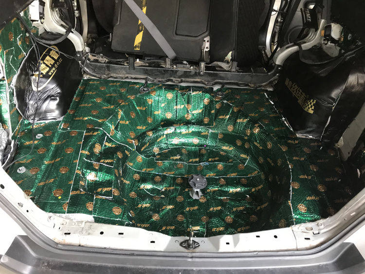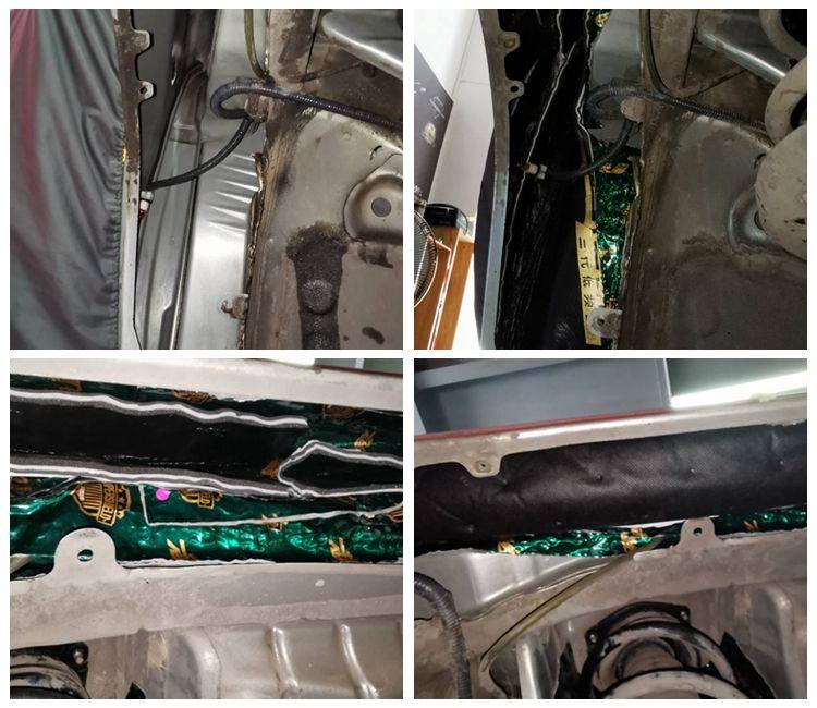 备注:首先把之前在别的店家做的隔音清除掉,然后把车门、尾箱后轮弧钣金清洁干净,之后再粘贴环保高效的大能汽车隔音止振和吸音材料,从而使得风噪、尾箱共鸣噪音、胎噪、引擎噪音等问题得到解决。