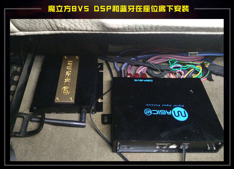 3、魔立方8V5 DSP和蓝牙在座位底下安装,别看它们的体积小巧,但是功能非常强大。