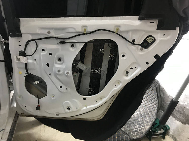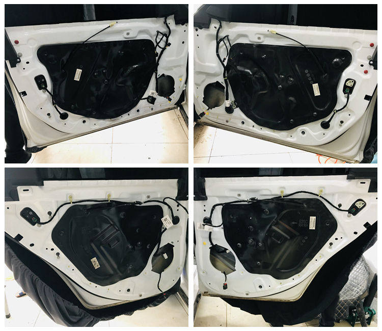 把迈锐宝车门钣金清洁干净,准备粘贴大白鲨隔音材料。