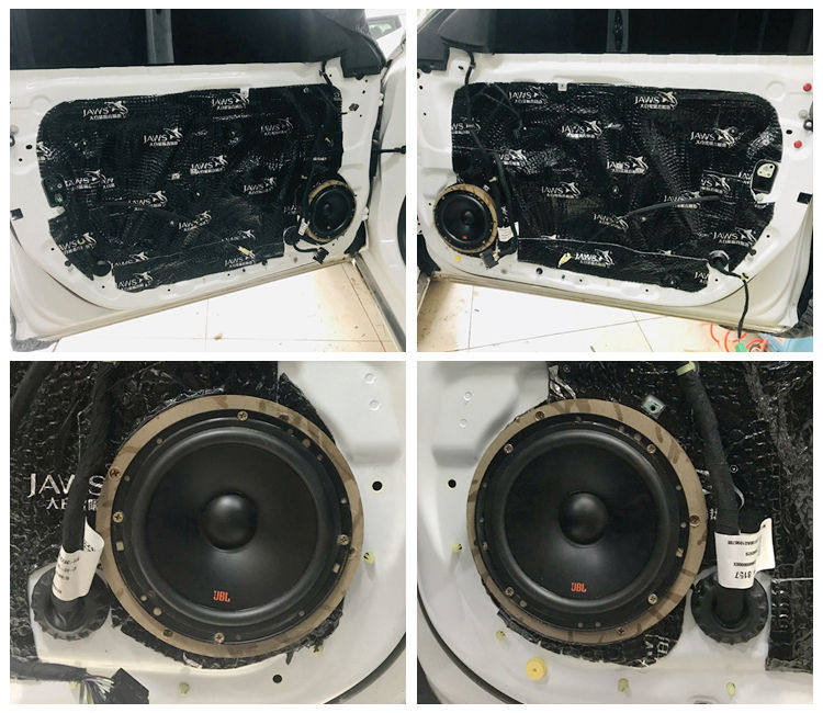 4、车门双层隔音处理,对位安装JBL喇叭的中低音,其高音也是对位安装。