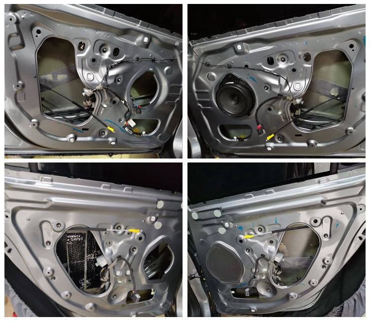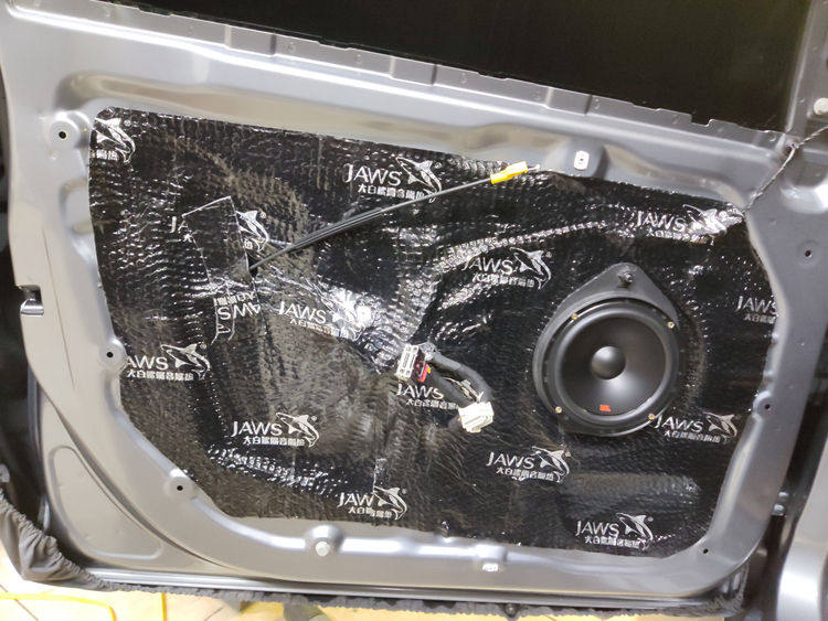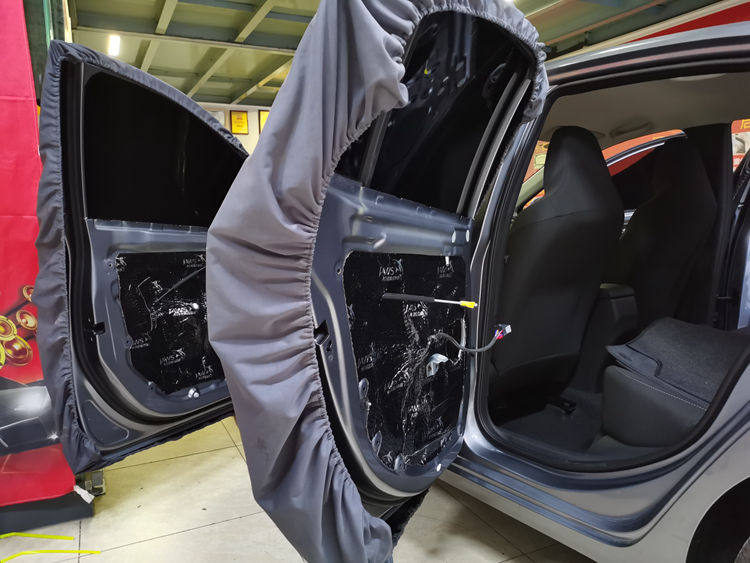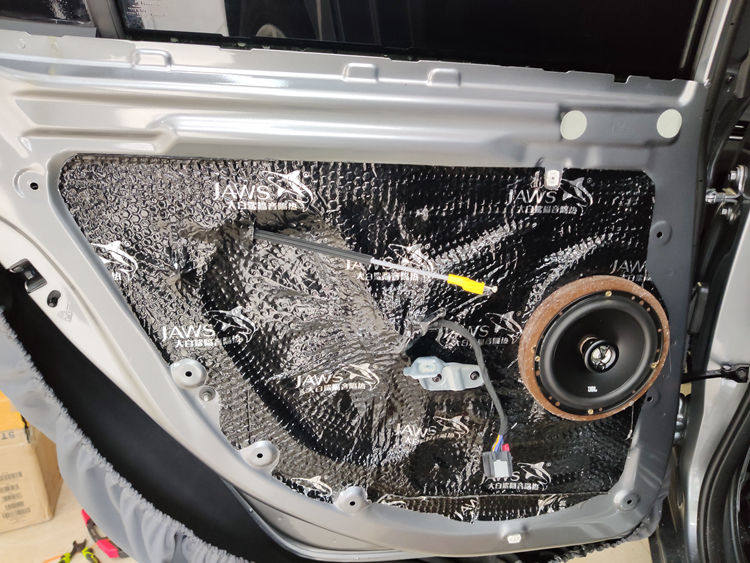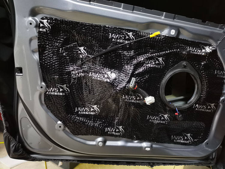车门隔音处理,粘贴大白鲨隔音材料,抑制钣金共振共鸣噪音,削减风噪。