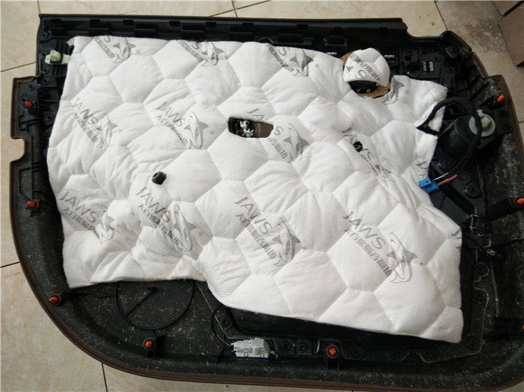 汽车音响改装第一步,四门隔音,大白鲨三层隔音,打造密闭音响箱体,优化喇叭发声环境,为音效加分。