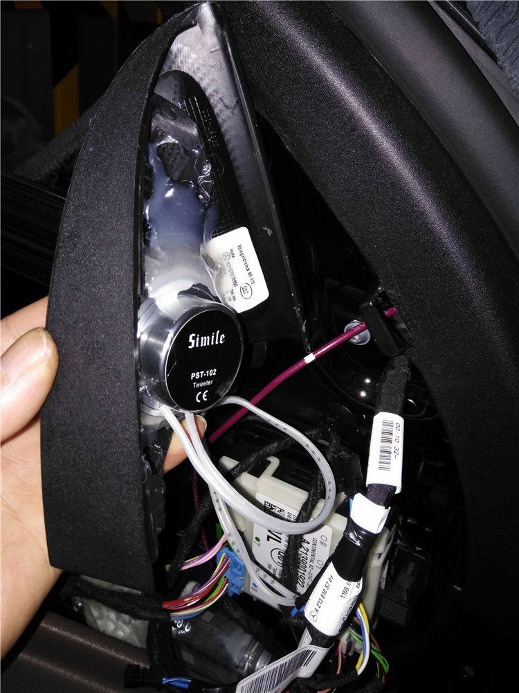 三分频结构原位安装,诗蔓PST-6.2C和诗蔓SK3.3中音组合,中音在安装的时候还改变了原车卡槽式固定,让喇叭发声更稳。