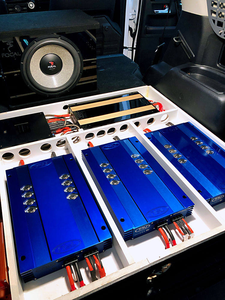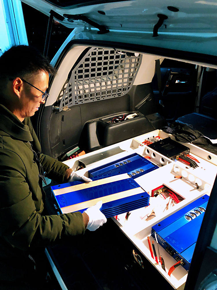 2、美国TRU发烧功放等器材在尾箱安装: