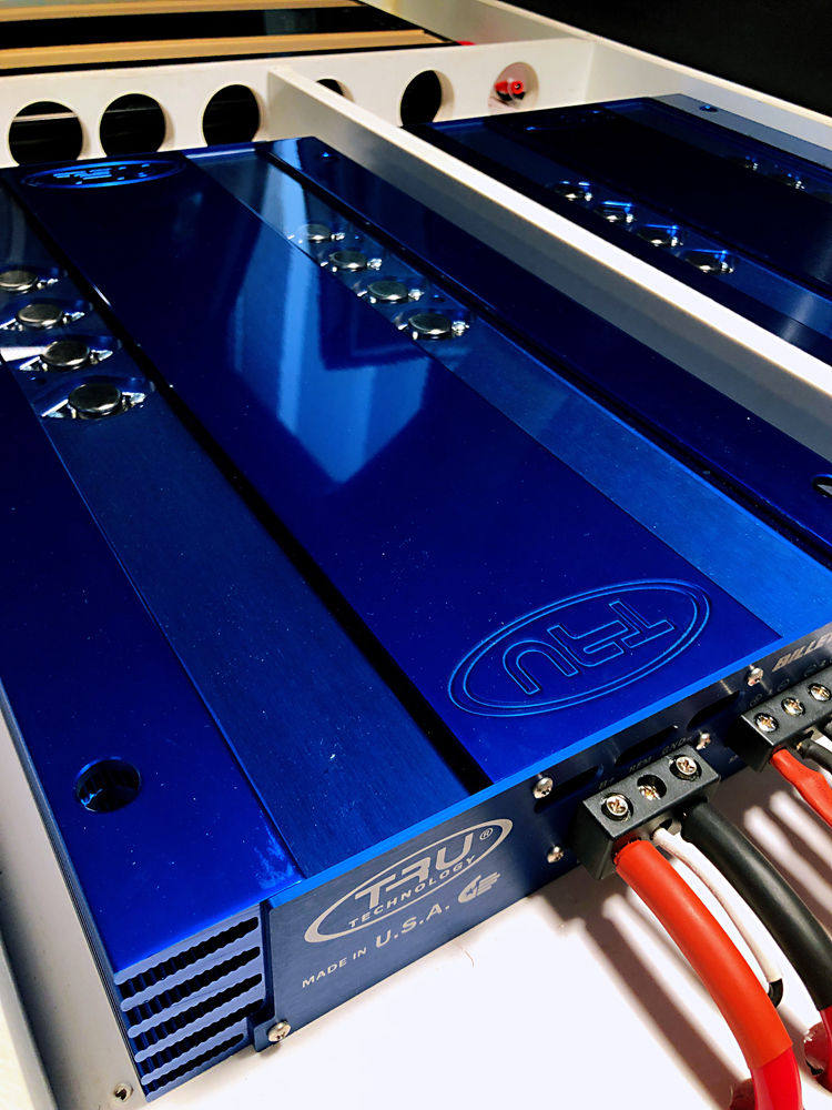 价格不菲的美国TRU B22-CA蓝金版纯甲功放,升级三台,用它们来推丹拿330D高音、430中音以及丹麦AT-CQ72H中低音构建的三分频喇叭!升级之后,空灵滴透、纯美无暇的高音;丝滑悦耳、圆润欲滴的中音效果;厚实饱满、极富质感的中低音效果,美妙音乐得到真实重现,聆听起来酣畅淋漓!