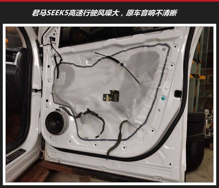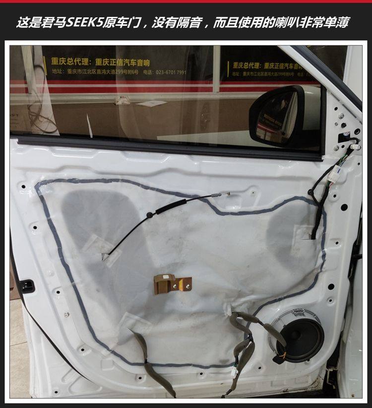 2、君马SEEK5原车门构造,车门并没有隔音处理,而且原车配置的喇叭也非常单薄