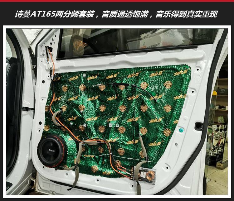 车门隔音降噪处理,里外钣金粘贴大能隔音止振材料,提升钣金扎实度、阻隔风噪;隔音之后车门就像一个音箱,它为喇叭提供一个非常好的工作环境。