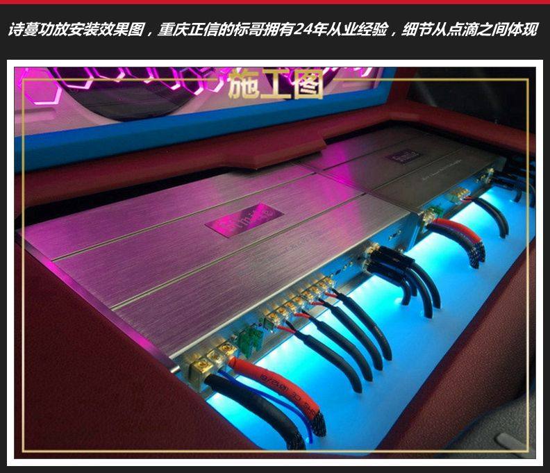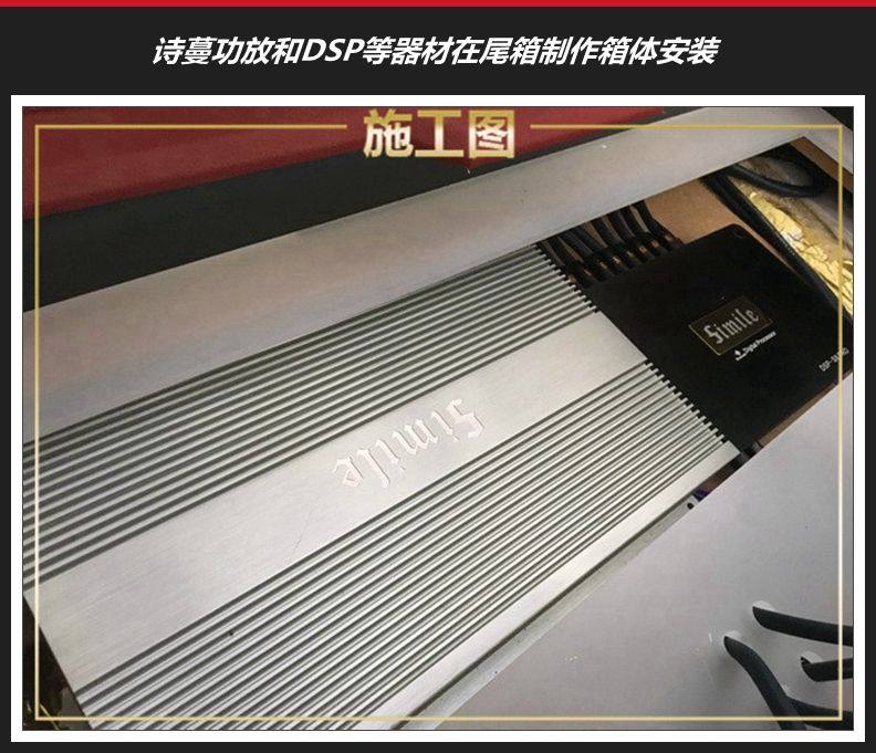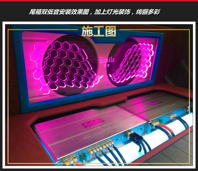 2、尾箱安装诗蔓功放和DSP,特制箱体安装,并装上灯光点缀,视觉效果也非常美观。