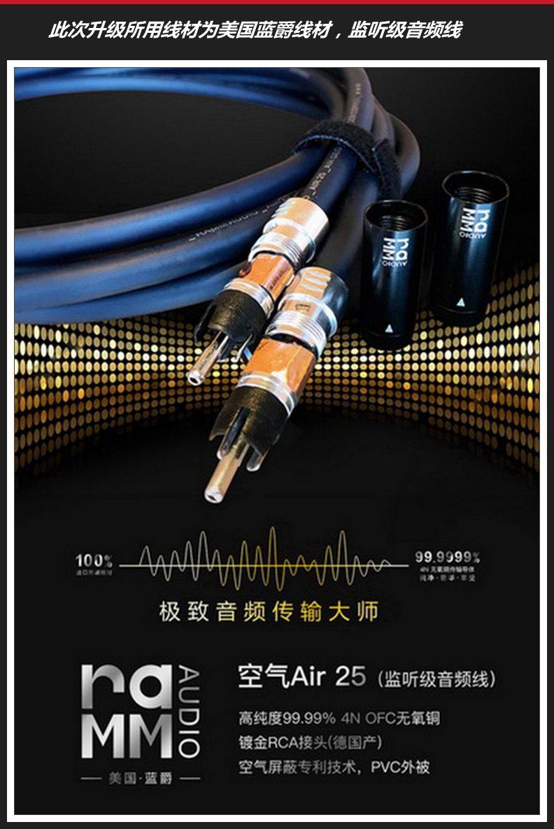 3、美国蓝爵线材,监听级音频线,专为发烧音响而生。