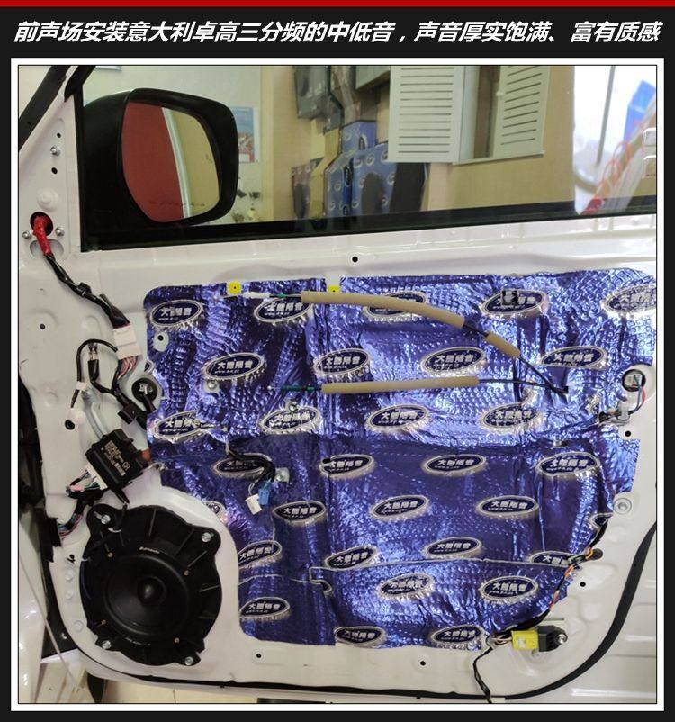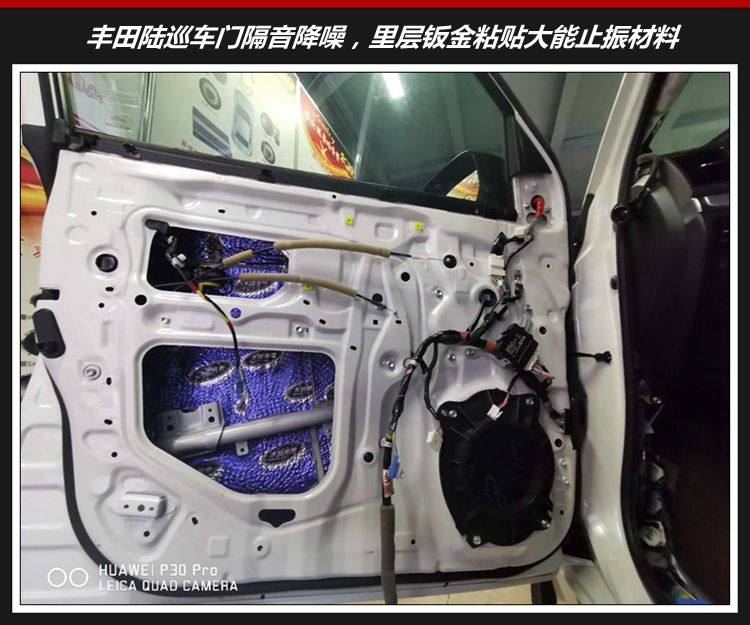 车型:丰田陆巡(原车JBL) 改装项目:汽车隔音改装和四门隔音降噪 前声场:意大利卓高三分频套装喇叭 一套 功 放:意大利卓傲50.4四声道功放 两台 D S P:魔立方1212 DSP 一台 低 音:诗蔓SPL-250 一只 隔 音:四门双层大能蓝金刚 一套 改装店家:重庆正信汽车音响改装 方案解析: 丰田陆巡原车为JBL喇叭,但是音质效果未能满足车主的聆听需求; 加装意大利卓高三分频套装喇叭,对位安装高音、中音以及中低音单元;改装好之后,音响效果得到华丽提升,音乐效果得到真实重现、细节还原更真实,高音清晰、中音甜润、中低频通透饱满! 在尾箱安装诗蔓SPL-250超低音单元,使得超低音颗粒饱满、音质醇厚富有质感! 2台意大利卓傲50.4四声道功放携手魔立方1212 DSP功放,让这套音响的每个喇叭单元,都能释放潜能! 1、车门隔音降噪处理,车门双层隔音处理,主要解决车门钣金共振共鸣噪音、风噪入侵。