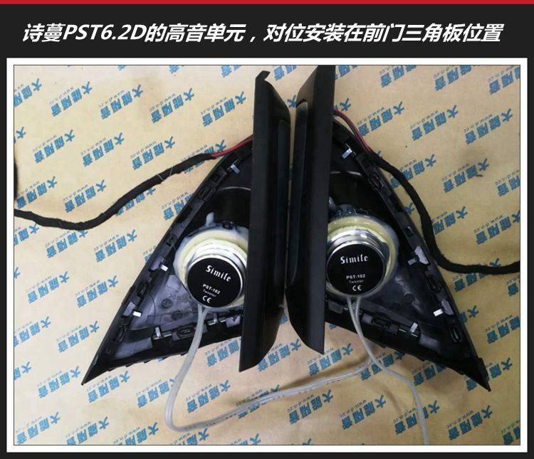 2、前门三角板位置对位安装诗蔓PST6.2D的高音单元,声音效果更清晰透彻。