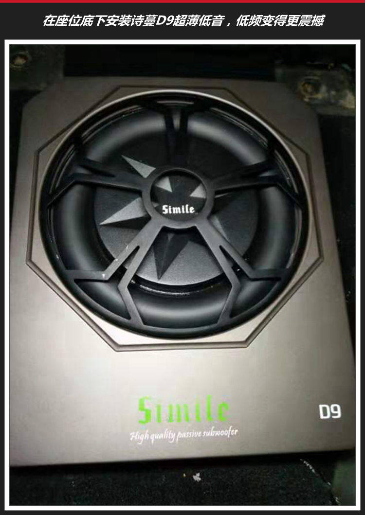 2、在座位底下安装诗蔓D9超薄低音,低频震撼有力,整体音效更丰满立体。